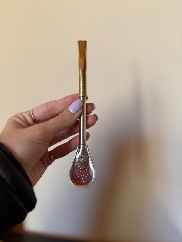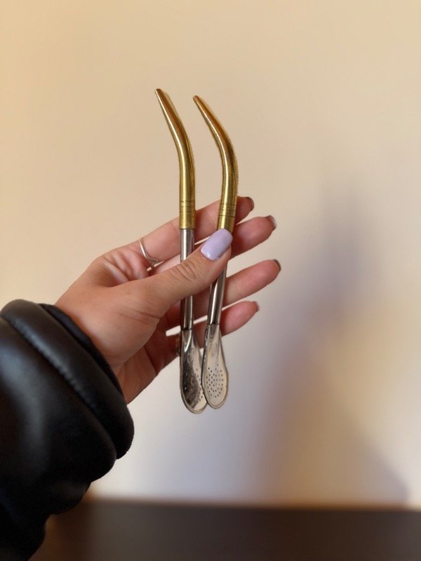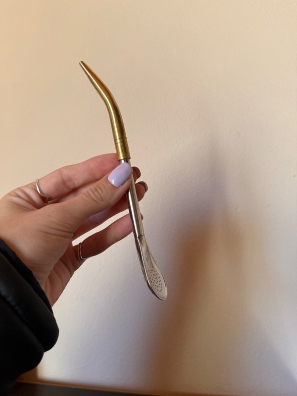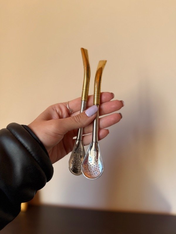 Bombilla pico loro caño liso acero/bronce🧉❤️